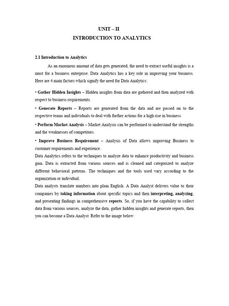 2.1 Introduction to Analytics