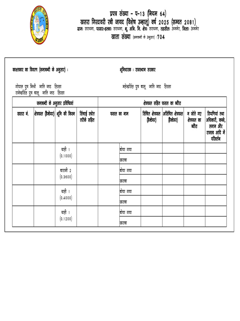 ;g izi= i&13 dh vkaf'kd udy gSA Department of Revenue udy tkjh djus dk le; ,oa fnukad % 28/06/2025 12:25:04