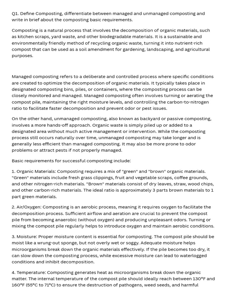 Define Composting, differentiate between managed and unmanaged composting and