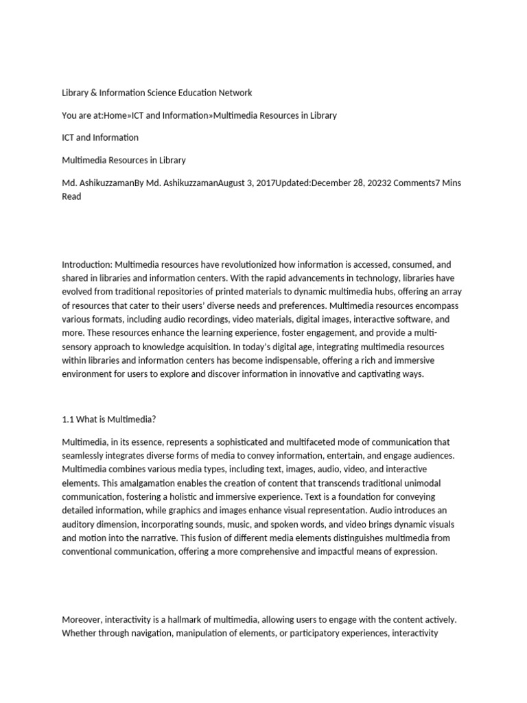 of resources that cater to their users’ diverse needs and preferences. Multimedia resources encompass