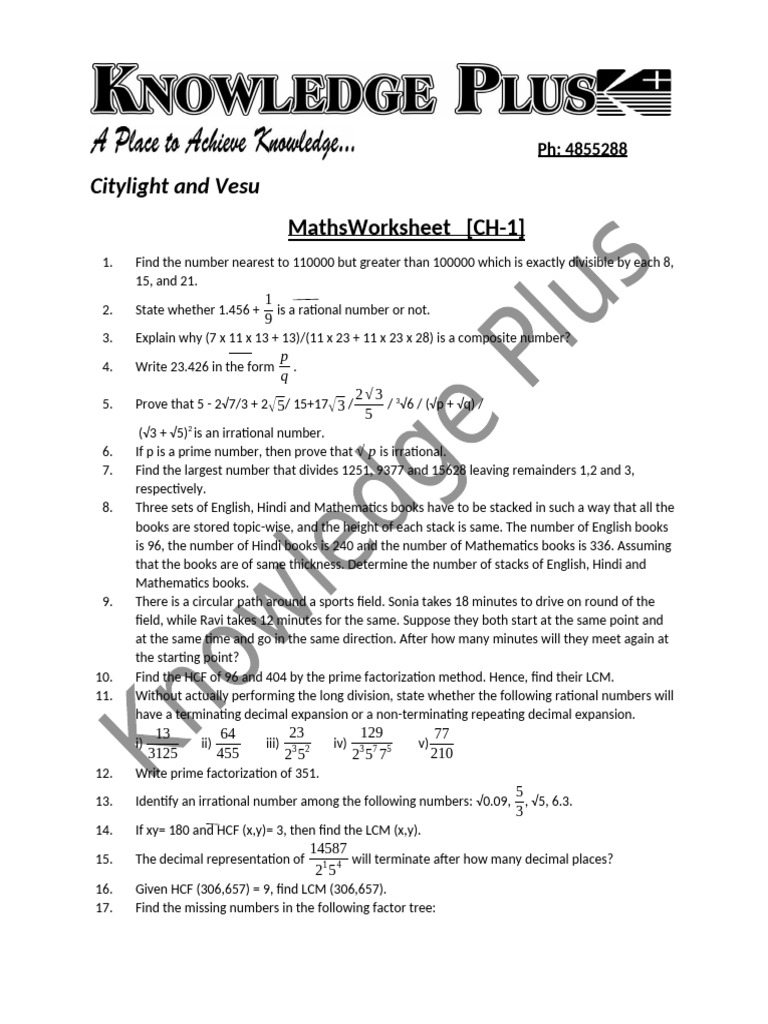 10. Find the HCF of 96 and 404 by the prime factorization method. Hence, find their LCM.