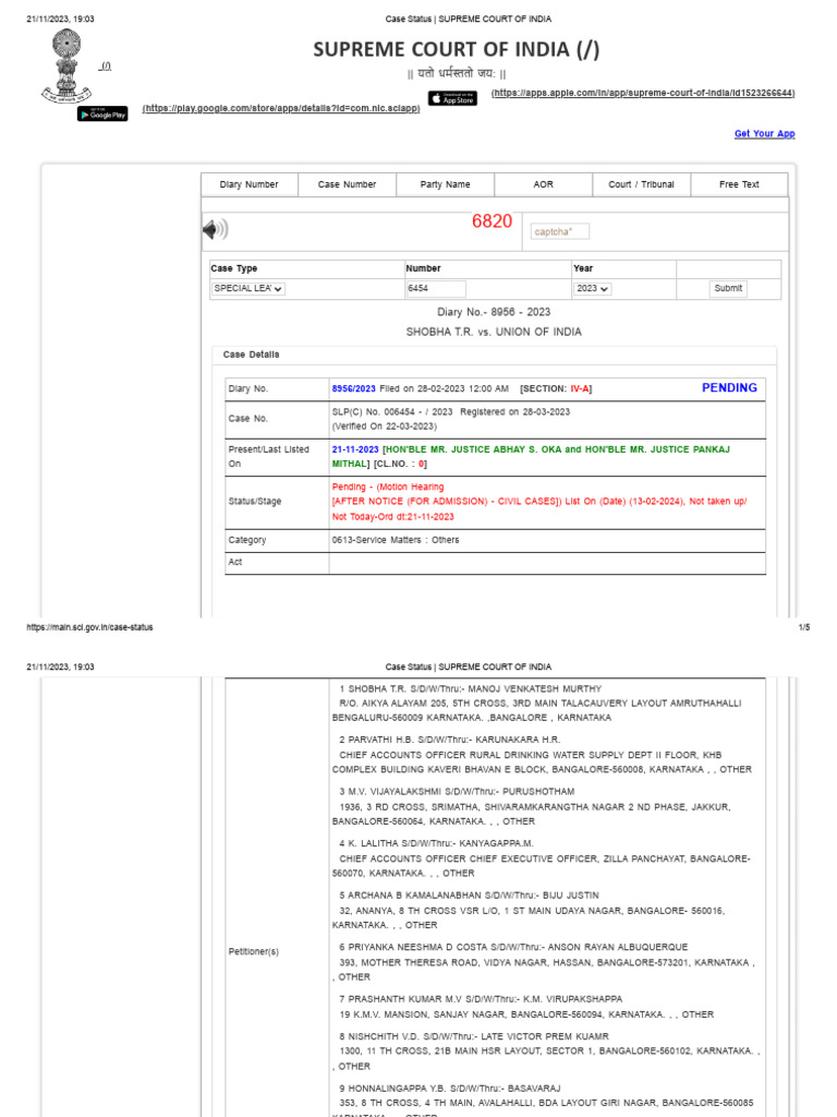 21/11/2023, 19:03 Case Status | SUPREME COURT OF INDIA