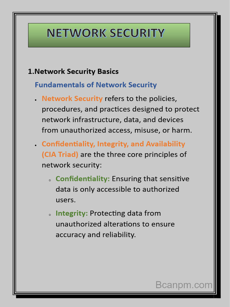 o Availability: Ensuring that network
