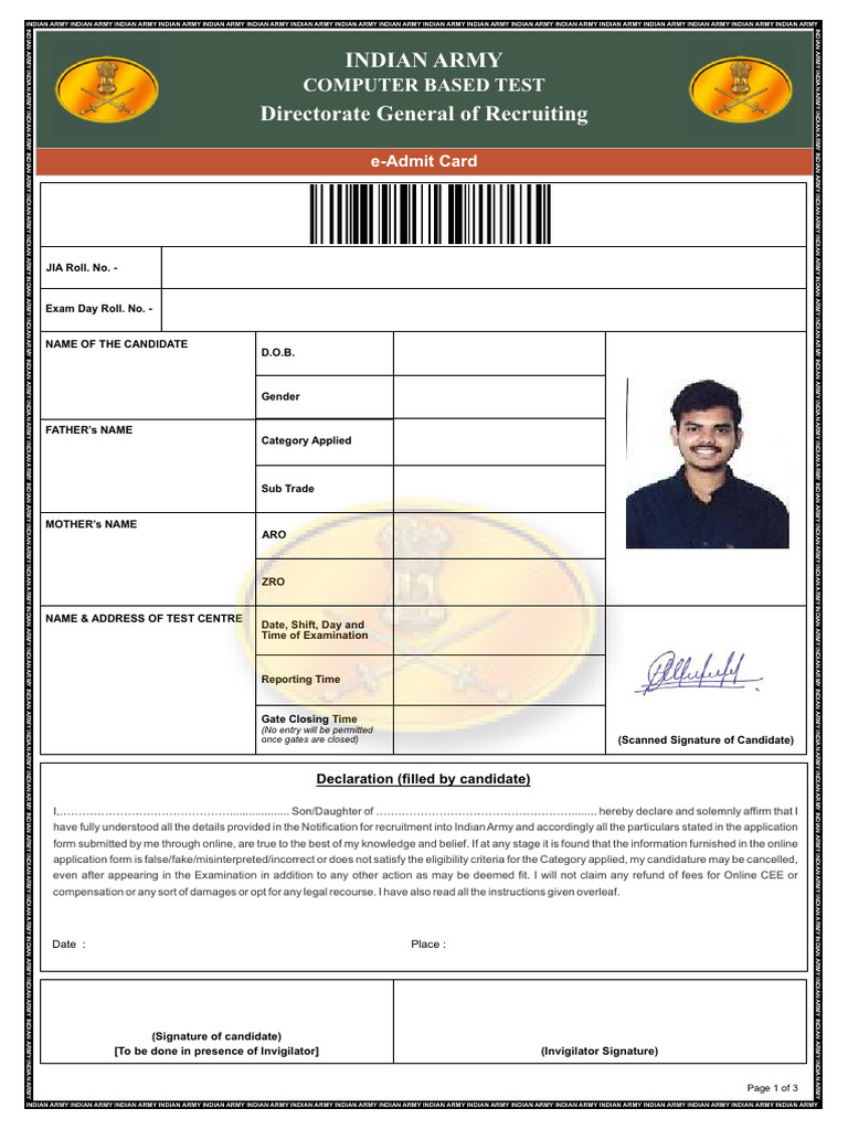1. The candidate must bring print out of this E-Admit Card to the allocated examination centre on the Date and Time mentioned above along