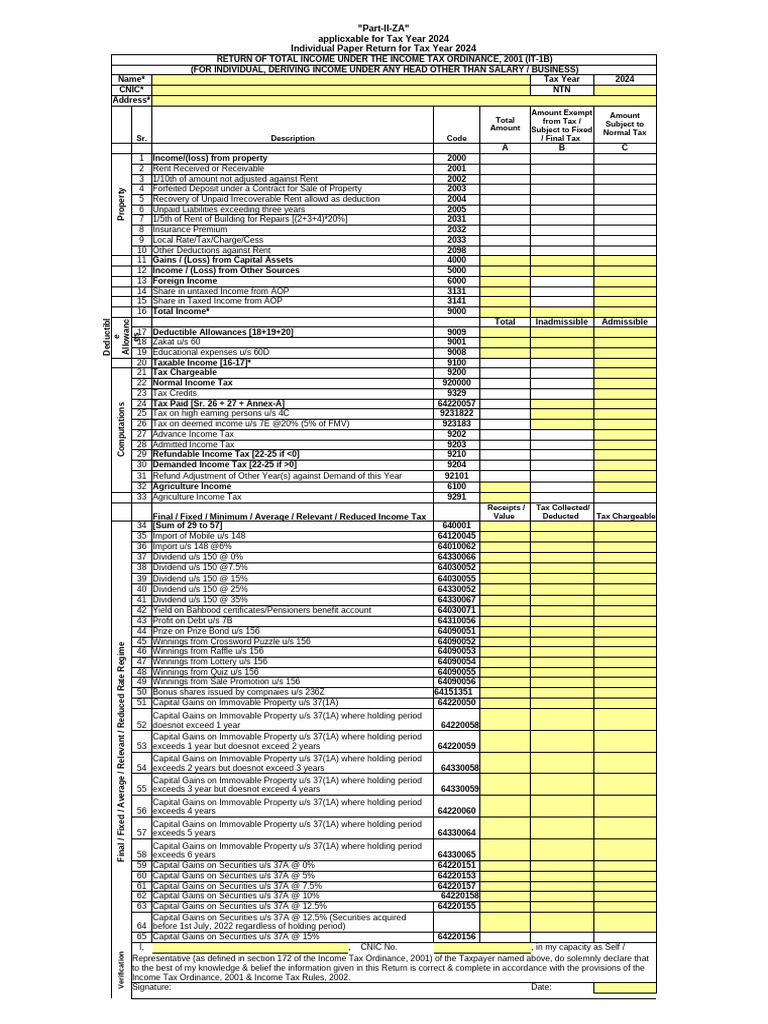 RETURN OF TOTAL INCOME / STATEMENT OF FINAL TAXATION UNDER THE INCOME TAX ORDINANCE, 2001