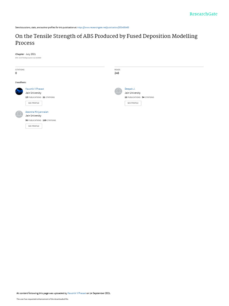 Keywords: 3D printing; rapid prototyping; acrylonitrile butadiene styrene; fused deposition modelling;