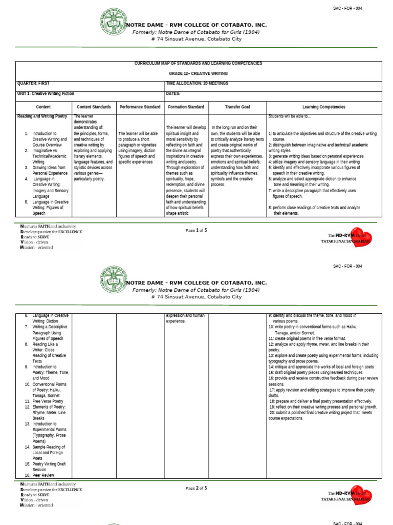 Course Overview creative writing by paragraph or vignettes reflecting on faith and and create original works of 2: distinguish between imaginative and technical/ academic