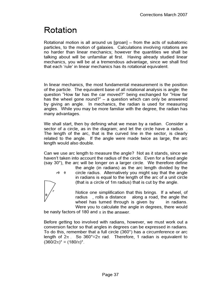 by giving an angle. In mechanics, the radian is used for measuring