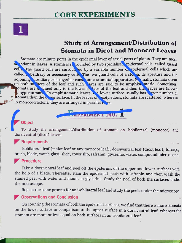 | Take a dorsiventral leaf and peel off the epidermis of the upper and lower surfaces with