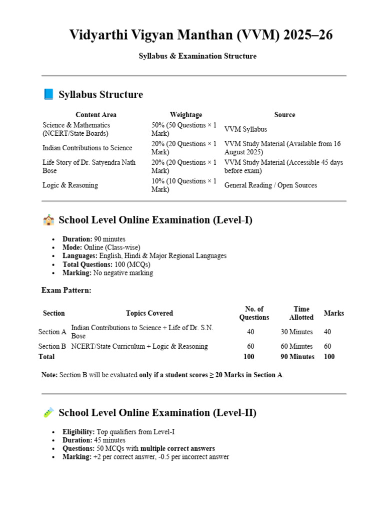 Vidyarthi Vigyan Manthan (VVM) 2025–26
