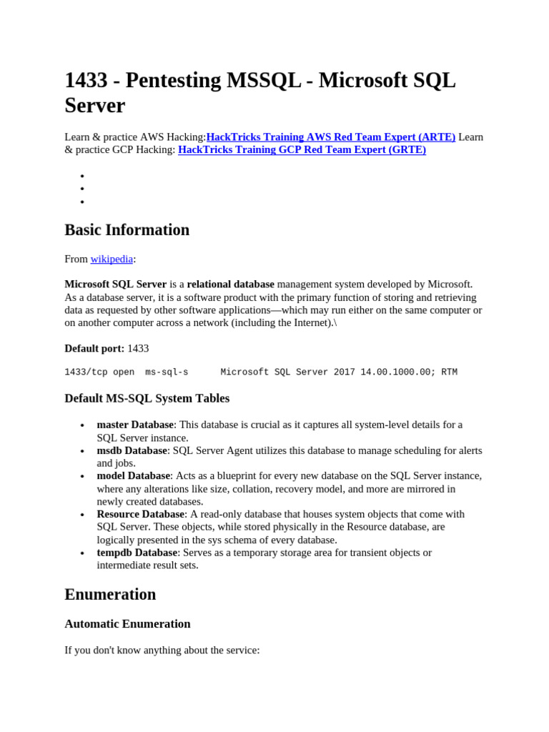 https://book.hacktricks.xyz/network-services-pentesting/pentesting-mssql-microsoft-sql-server
