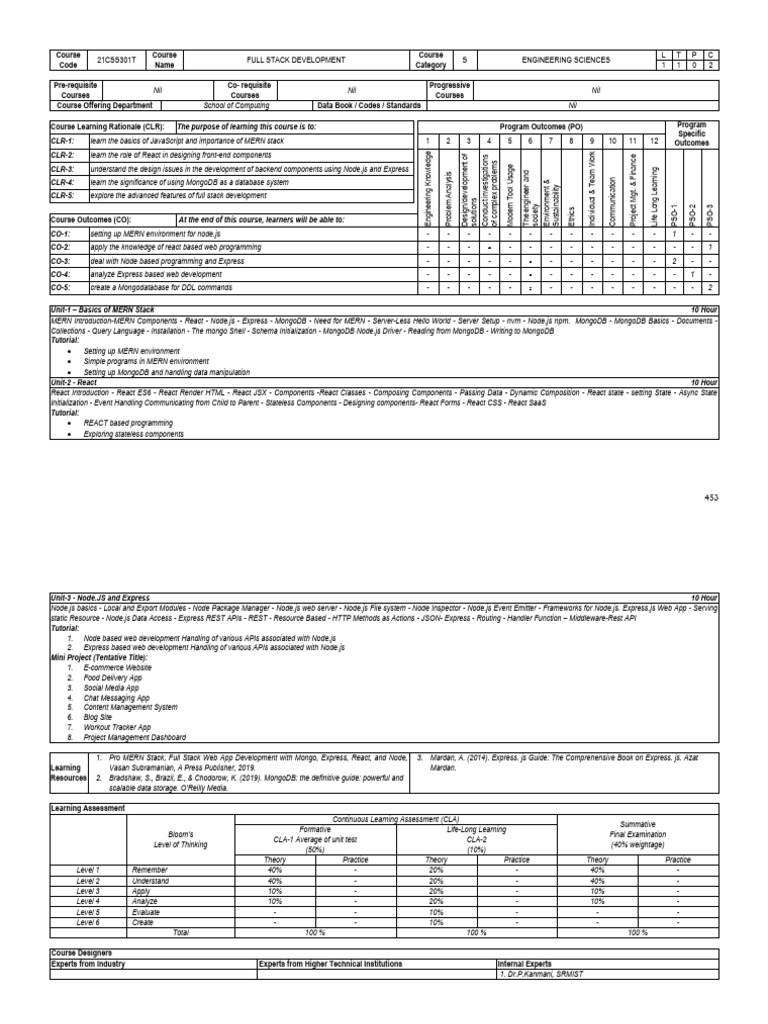 21CSS301T FULL STACK DEVELOPMENT S ENGINEERING SCIENCES