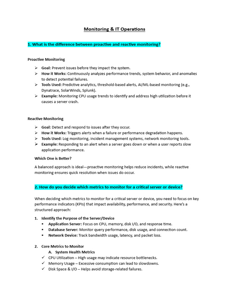 1. What is the difference between proactive and reactive monitoring?