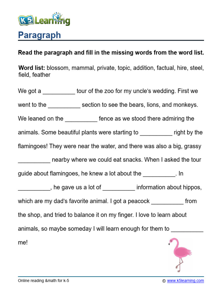 Word list: blossom, mammal, private, topic, addition, factual, hire, steel,