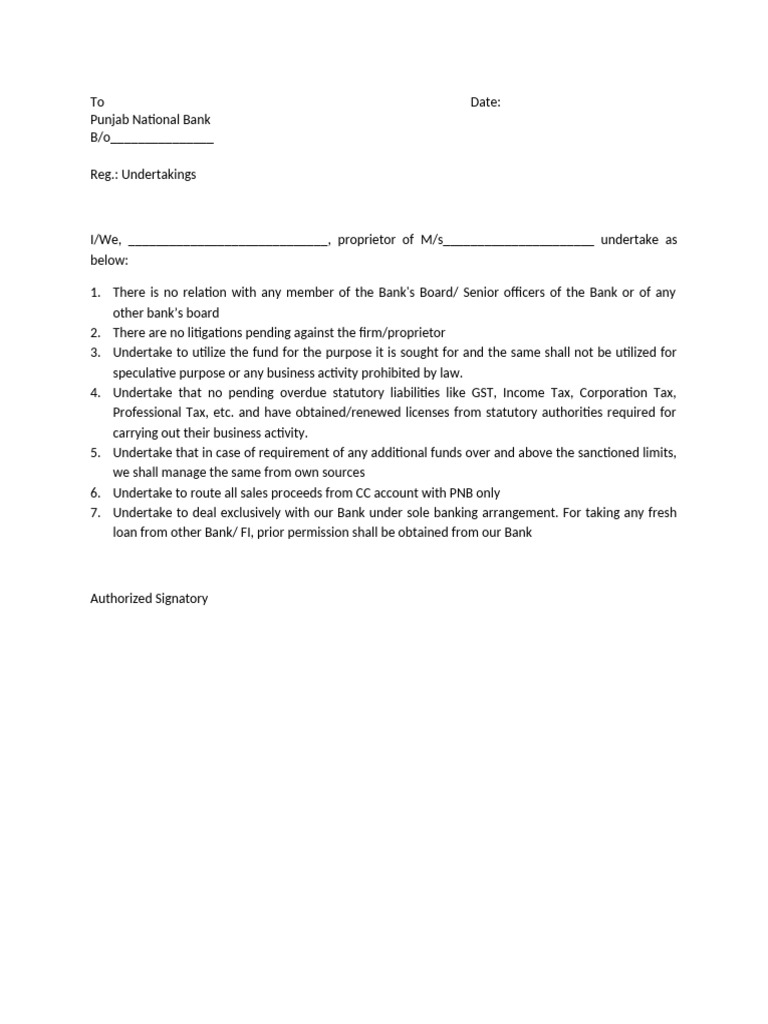 I/We, _____________________________, proprietor of M/s______________________ undertake as
