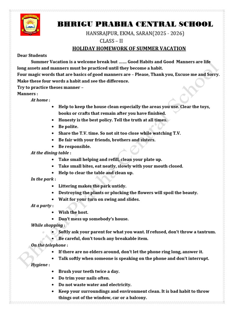 Summer Vacation is a welcome break but ……. Good Habits and Good Manners are life