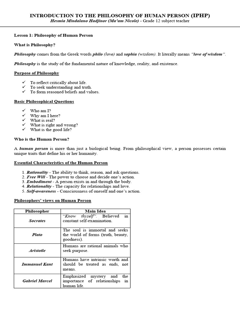 Lesson 1: Philosophy of Human Person