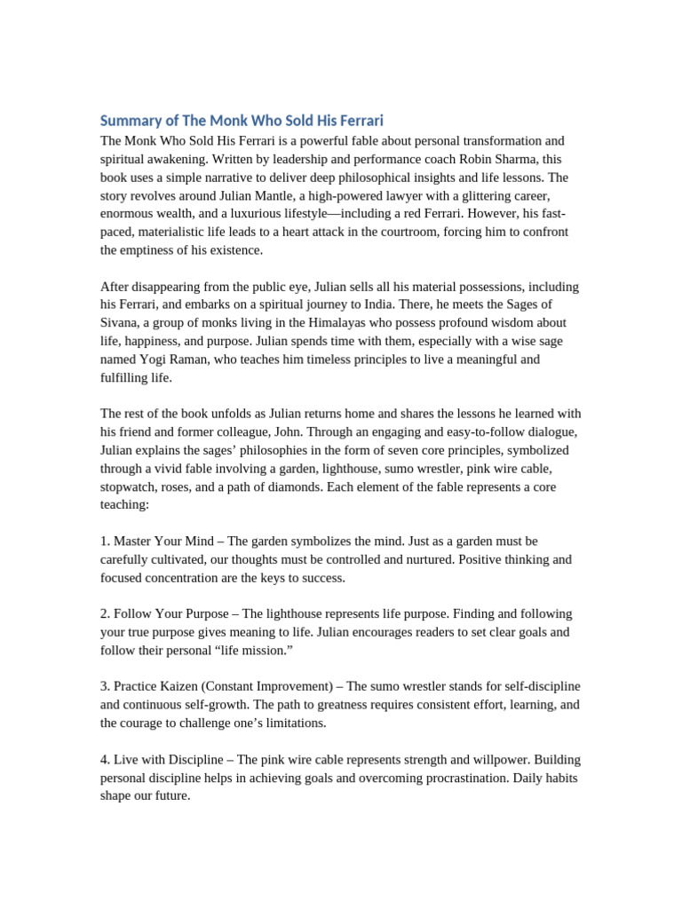 Summary of The Monk Who Sold His Ferrari