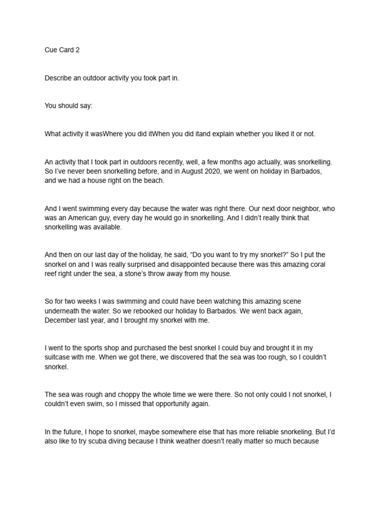 What activity it wasWhere you did itWhen you did itand explain whether you liked it or not.