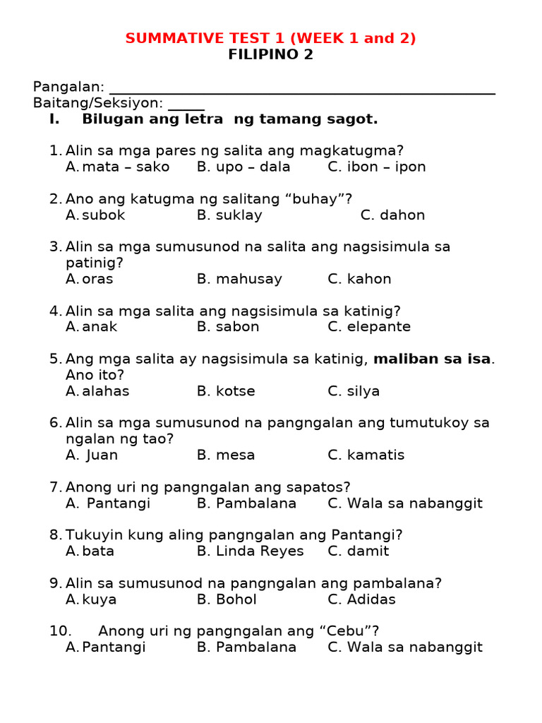 SUMMATIVE TEST 1 (WEEK 1 and 2)