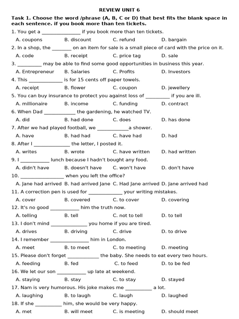 Task 1. Choose the word /phrase (A, B, C or D) that best fits the blank space in