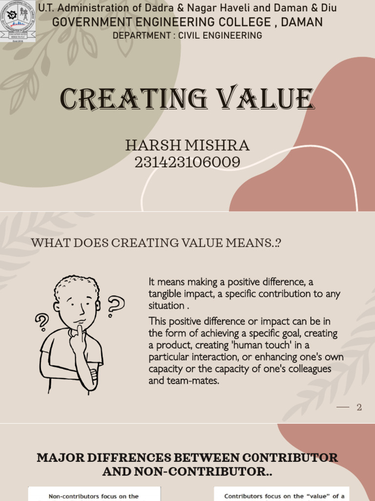 WHAT DOES CREATING VALUE MEANS..?