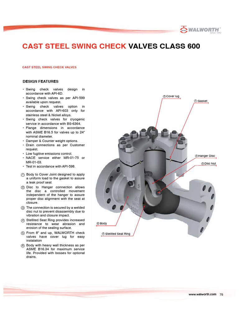 • Swing check valves as per API-599