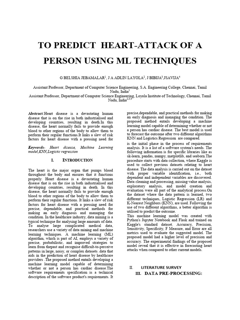 Keywords- Heart disease, Machine Learning analysis. It is a list of a software system's needs. The