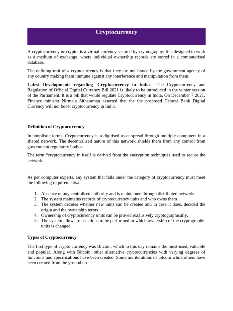 of the Parliament. It is a bill that would regulate Cryptocurrency in India. On December 7 2021,