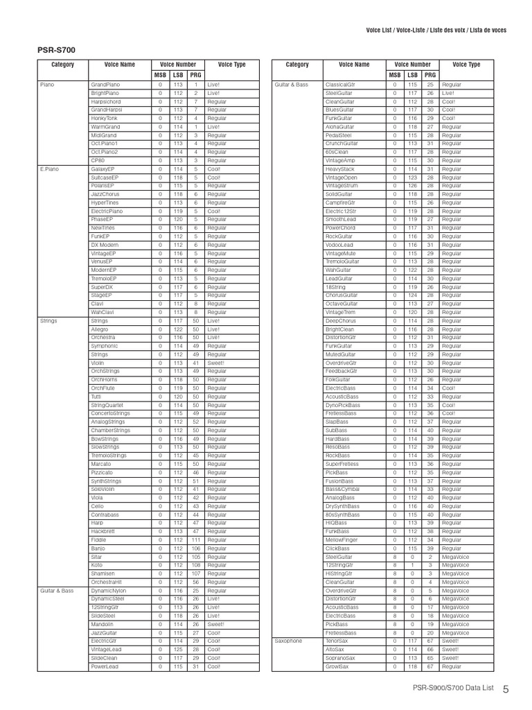 Lista Programas PSR S700