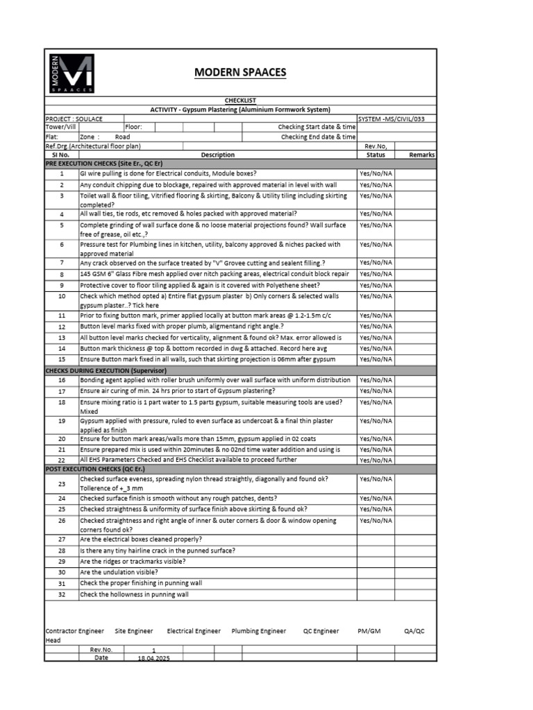 ACTIVITY - Gypsum Plastering (Aluminium Formwork System)