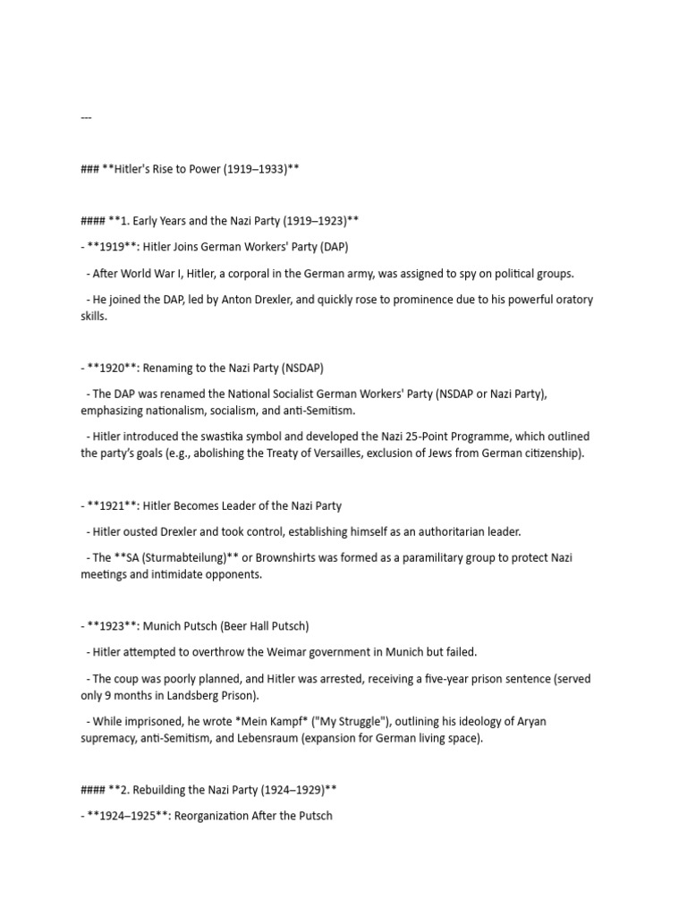 #### **1. Early Years and the Nazi Party (1919–1923)**