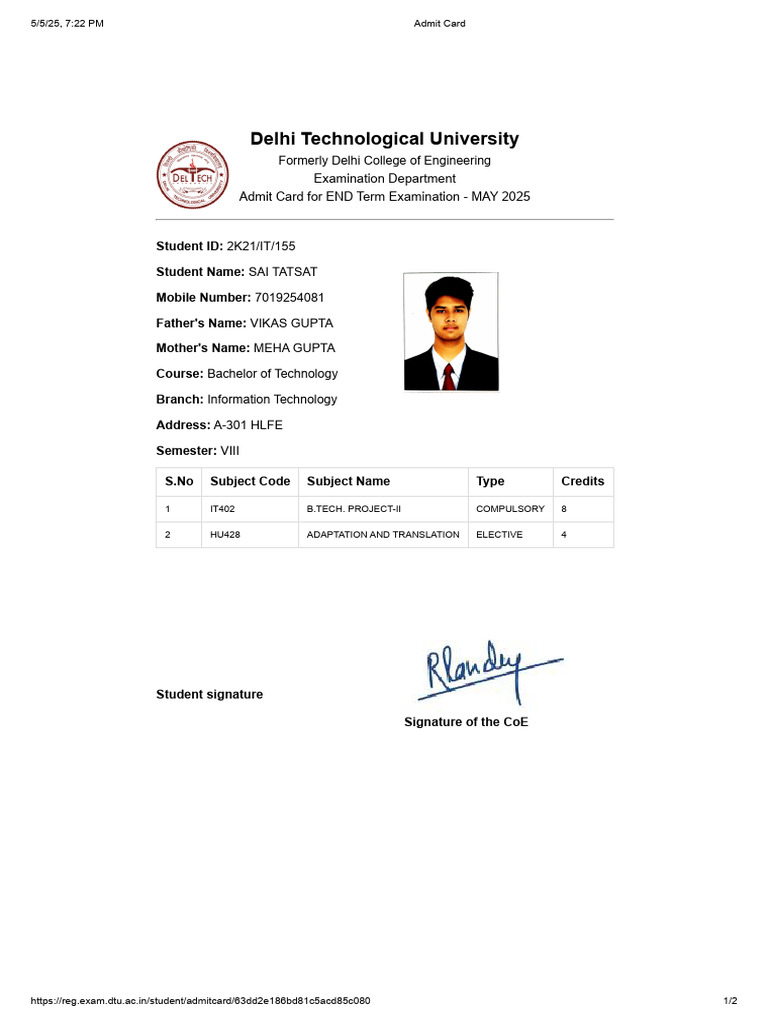 https://reg.exam.dtu.ac.in/student/admitcard/63dd2e186bd81c5acd85c080 1/2