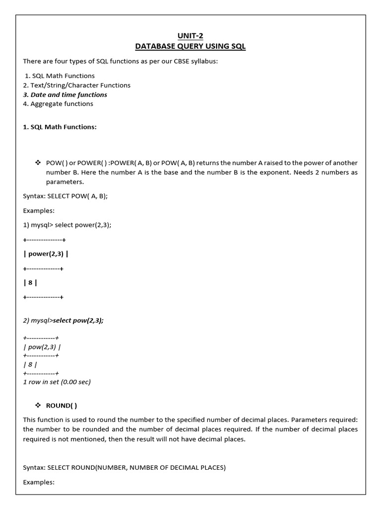 POW( ) or POWER( ) :POWER( A, B) or POW( A, B) returns the number A raised to the power of another