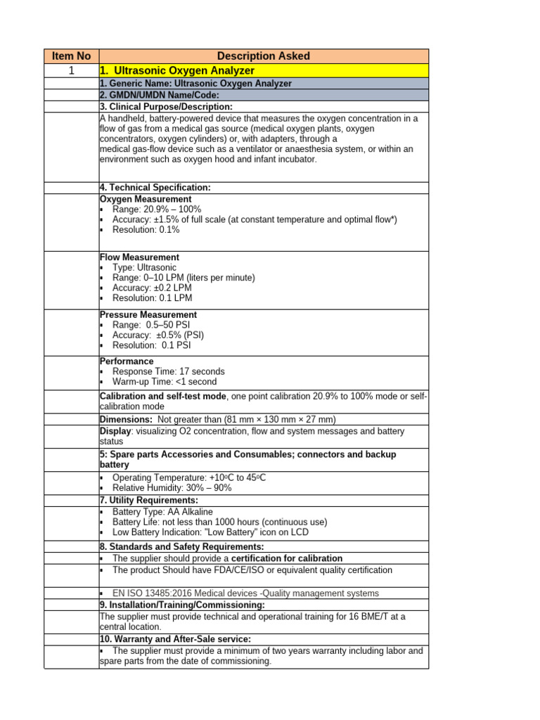 1. Generic Name: Ultrasonic Oxygen Analyzer