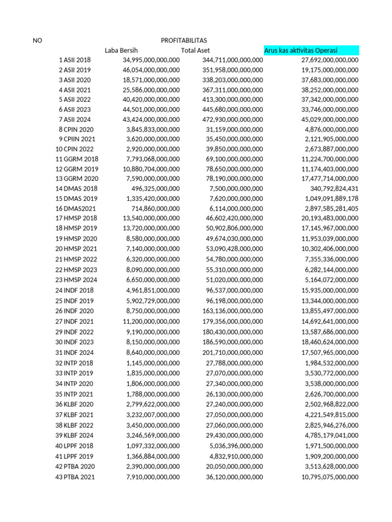 Laba Bersih Total Aset Arus kas aktivitas Operasi