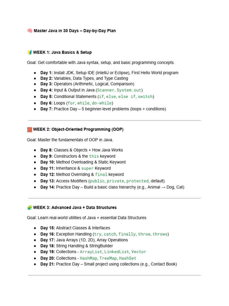 🧠 Master Java in 30 Days – Day-by-Day Plan