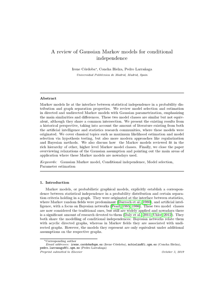 Keywords: Gaussian Markov model, Conditional independence, Model selection,