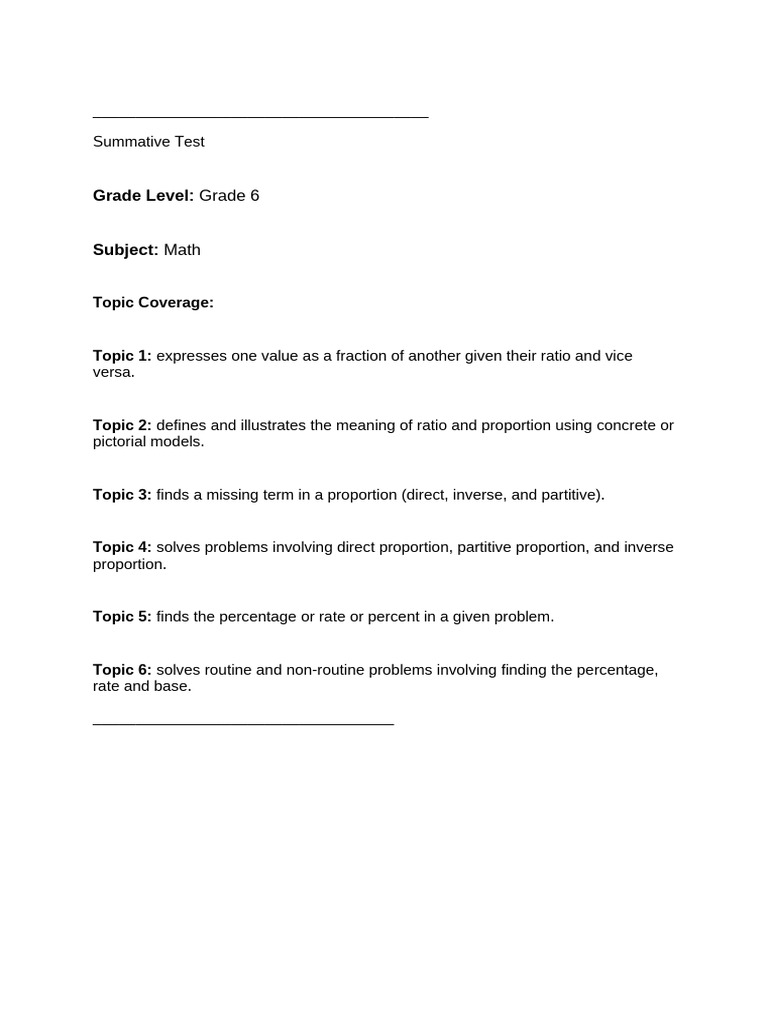 Topic 4: solves problems involving direct proportion, partitive proportion, and inverse