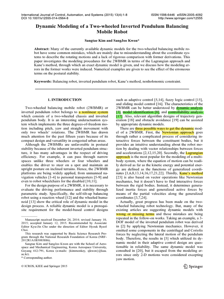 wheel inverted pendulum,” IEEE Trans. on Indus- neering from Seoul National University