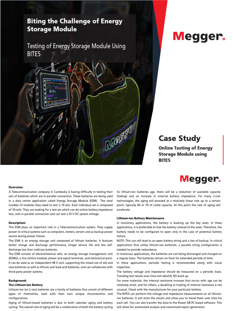 [2] Megger Application Note: “Lithium-Ion battery maintenance”