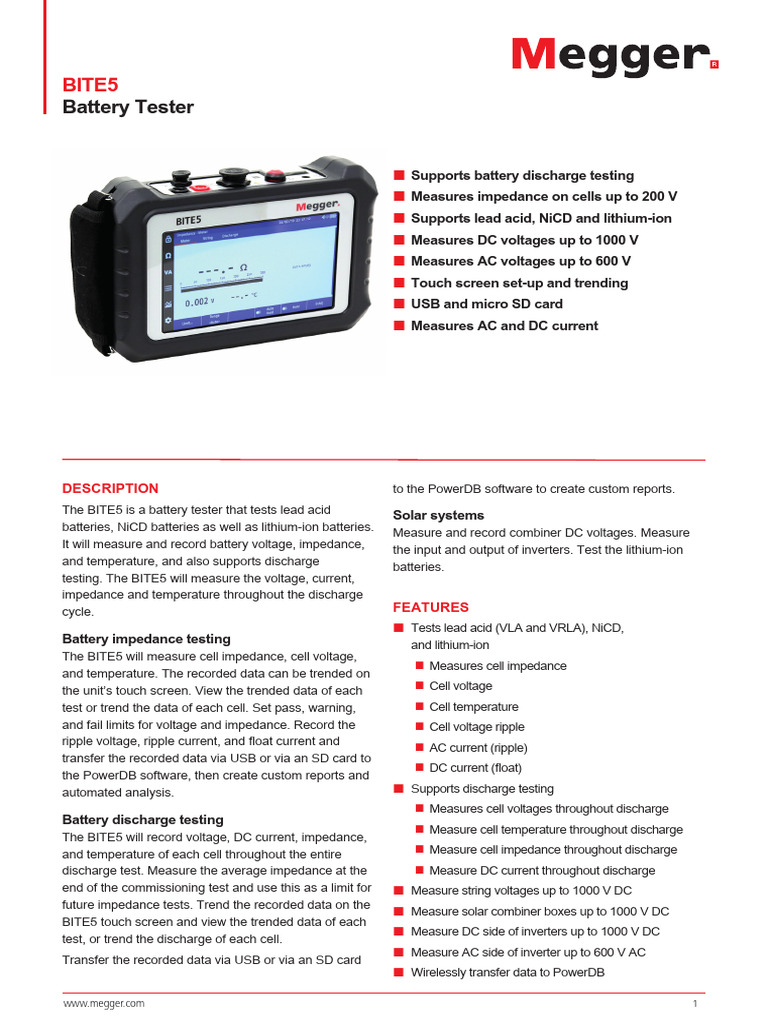 The BITE5 is a battery tester that tests lead acid Solar systems