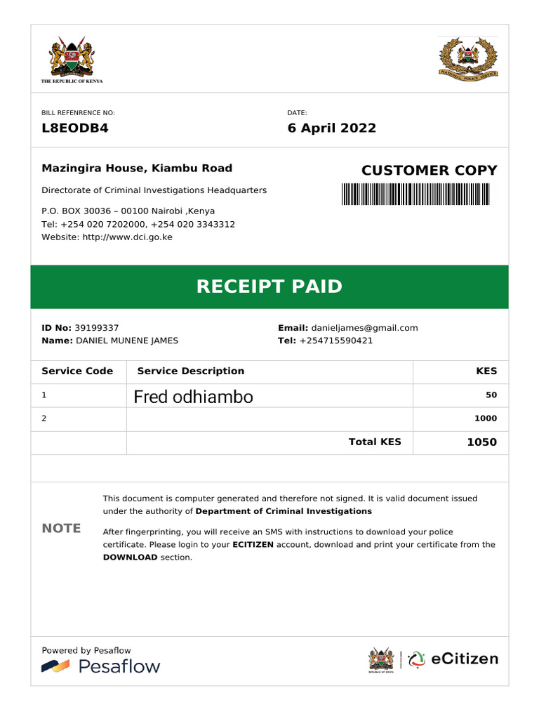 Name: DANIEL MUNENE JAMES Tel: +254715590421