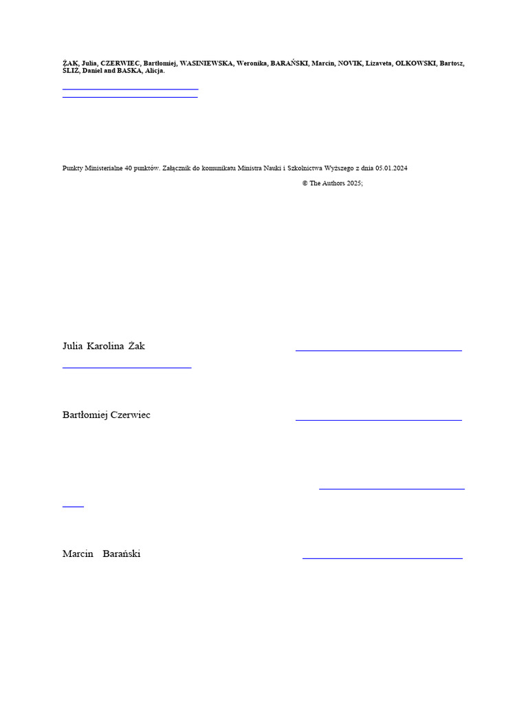 Interpretation of results: Julia Karolina Żak, Weronika Wasiniewska, Lizaveta Novik, Marcin