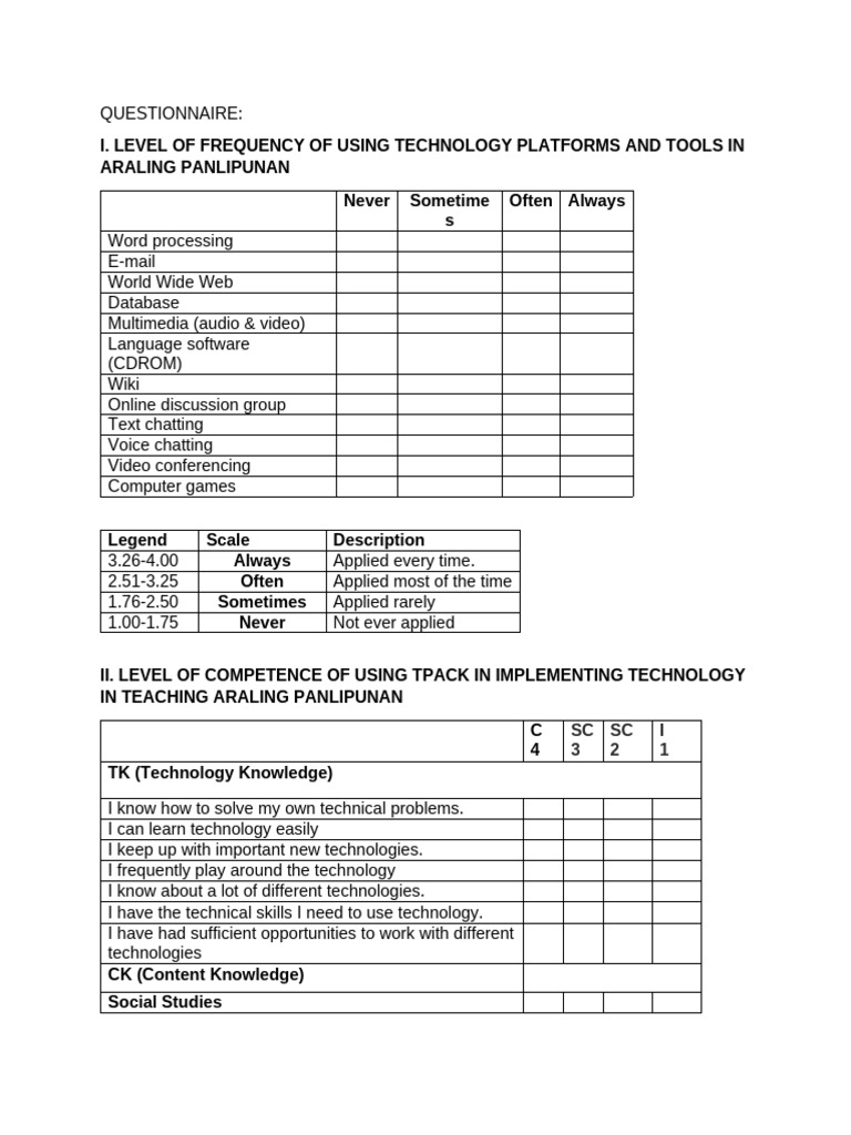 1 dealt with the level of frequency of using technology platforms and tools in Araling
