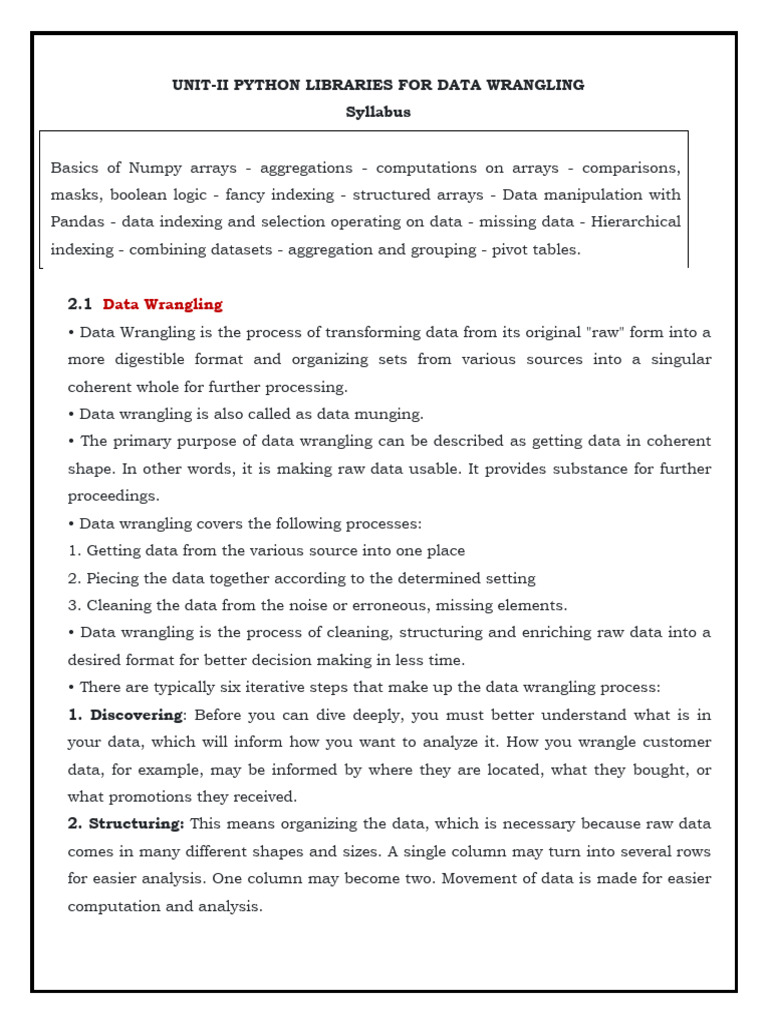 UNIT-II PYTHON LIBRARIES FOR DATA WRANGLING
