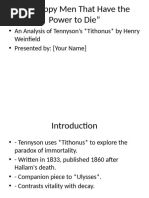the value and naturalness of mortality. Through the voice of the aging Tithonus, Tennyson