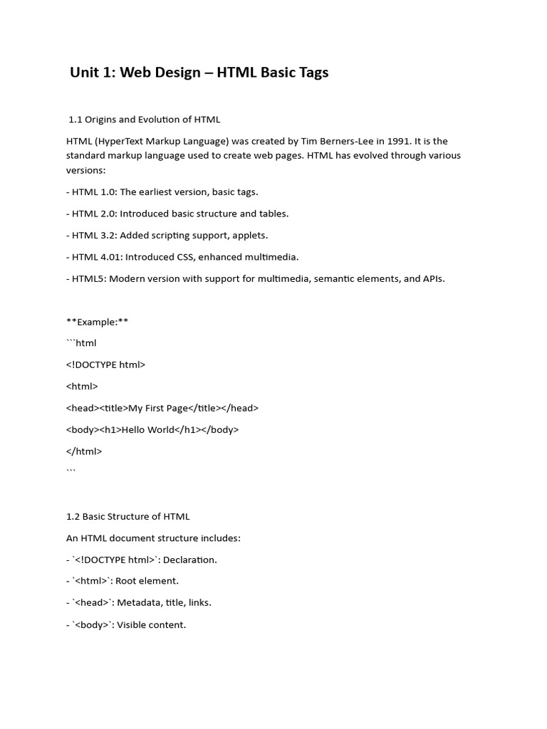 1.1 Origins and Evolution of HTML