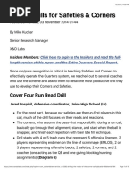 Case 1: Creating Conflict With the Play Side Defensive End We've found that it's that pesky EMLOS (end man on line of scrimmage) that could cause the biggest headache when running the scheme. We realize that plenty of teams have now started to adjust the scheme by running it into the A/B gaps (which we will explain later) but if you don't get the proper hat on that edge player the play could be squashed. We've found that how you block that player most likely depends on where he lines up. For all intents and purposes, we'll use the following numbering system to declare his alignment: 7-technique: inside eye of the tight end 6-technique: head up the tight end 9-technique: outside eye of the tight end Since we've found that the 7-technique causes the most concern, we will start there. A gap scheme by nature, the power play is designed to "create a wall" by using down blocking from the front side of the play. Coupled with a back-side puller that kicks out (can be a guard or an H-back) the play is designed to be run outside the down blocks and inside the kick out block. It was Jim Tressel, the head coach at Ohio State, who used to tell Maurice Clarett to get "cheek-to-cheek," meaning split the butt cheeks of the kick out blocker and the widest down blocker and run the ball in the alley. While Tressel may be brave enough to tell a talented back like Clarett where to run the ball, most of the coaches we spoke with aren't as specific with their directives. Plus, defensive ends now are taught to wrong-arm all blocks to push the ball to the perimeter, which can make a kick out block next to impossible. One way to diffuse this problem is simply to block down on the 7-technique with the tight end and eliminate any kick-out scenario. Our research found that 50.7% of coaches teach their tight end to do exactly that. Sam Pittman, a 26-year coaching veteran who is now the offensive line coach at the University of North Carolina, made his money with the likes of running back Michael Turner and Garrett Wolfe running the scheme. Pittman makes it real simple - he has the tight end handle the defensive end...period. No chip and release. No pass set. Just plain 'ol block him. "He (tight end) is responsible for C gap and when we teach the power scheme gaps always override people," says Pittman. The main coaching point is for the tight end to reach block the 7-technique by getting his back-side shoulder down and cutting him off from the gap. North Carolina's favorite formation to run it is out of the trey set (Diagram 1) which would mainly account for a six man box - with two safeties high to account for the possibility of three vertical threats. Pittman prefers to run it to the 3-technique side because it accounts for a natural double team by the onside tackle and guard, but the play can hit anywhere from the play side A gap out. "The key is to make that defensive end move laterally and get him out of that C gap," says Pittman.