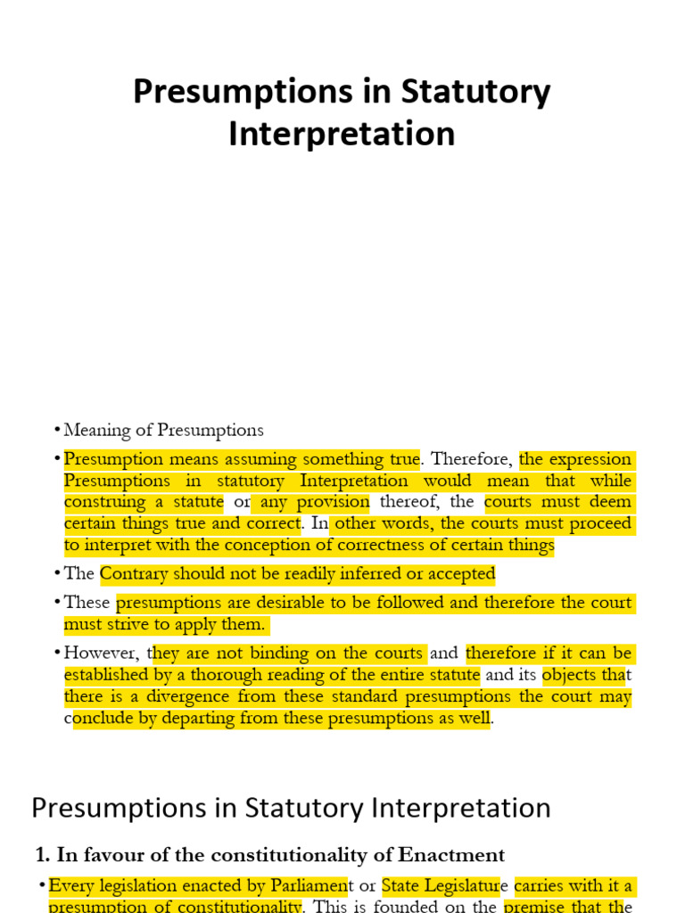 Presumptions in statutory Interpretation would mean that while